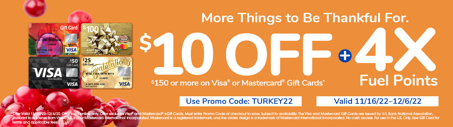 . Over 200 gift cards from your favorite retailers. Order gift cards online for pickup. Well do the shopping for you.